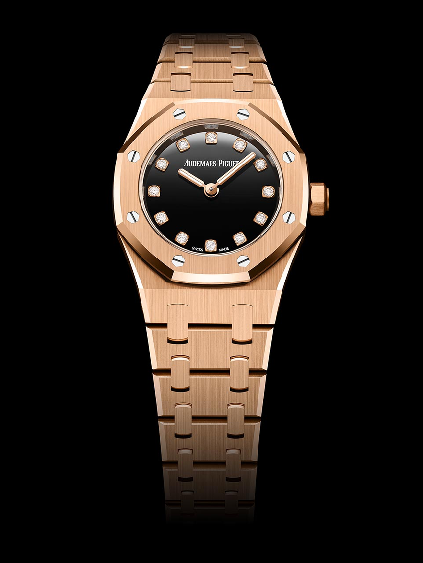 The Audemars Piguet Royal Oak Mini Quartz in Black Onyx is priced at £36,300 and available at audemarspiguet.com