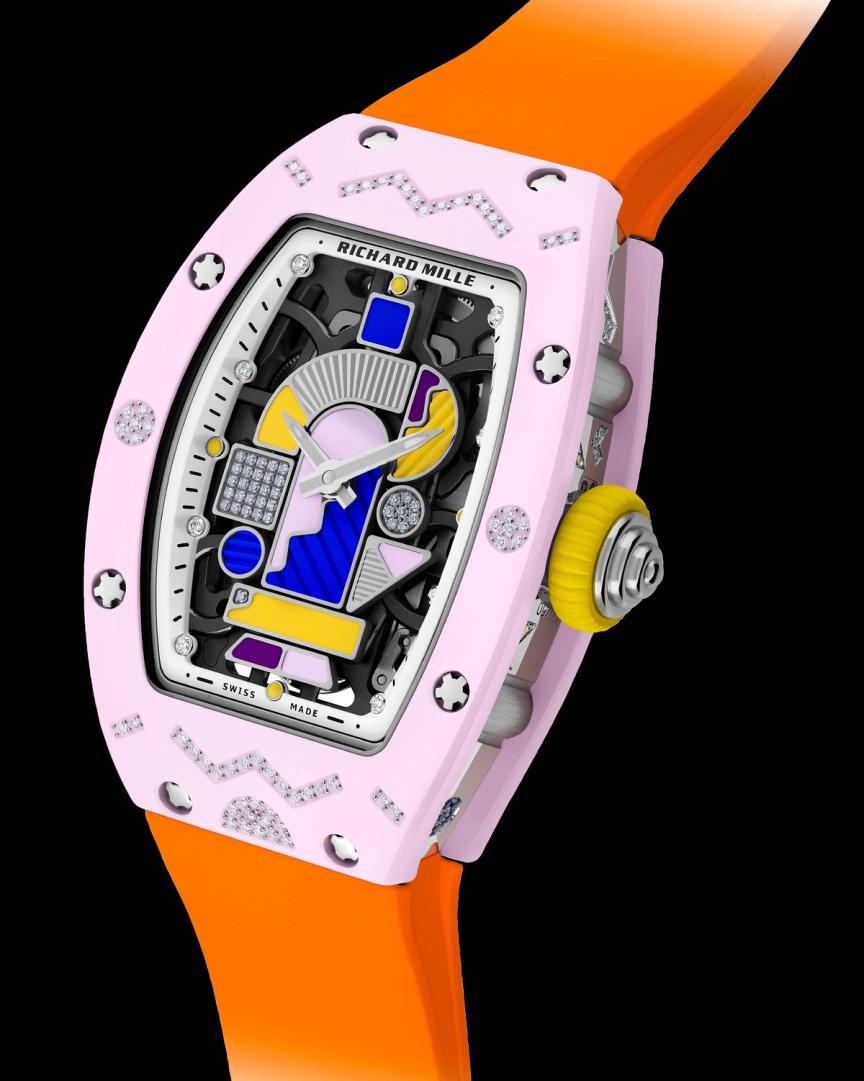 From its inception, the RM 07-01 has aimed to bring playful homage to the wrist. Not a dutiful revival of heritage for preservation's sake (after all, the brand was all but born), yet with a contemporary nod to a more irreverent era: the 1980s. Drawing on that spirit of emancipation, the dial becomes the focal point. A Tetris-like arrangement of laser-cut forms creates a segmented, collaged surface, an unmistakable echo of the Memphis design movement that defined the decade.